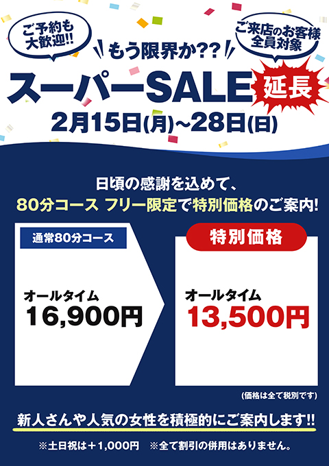 日頃の感謝を込めて、80分コース フリー限定で特別価格のご案内!